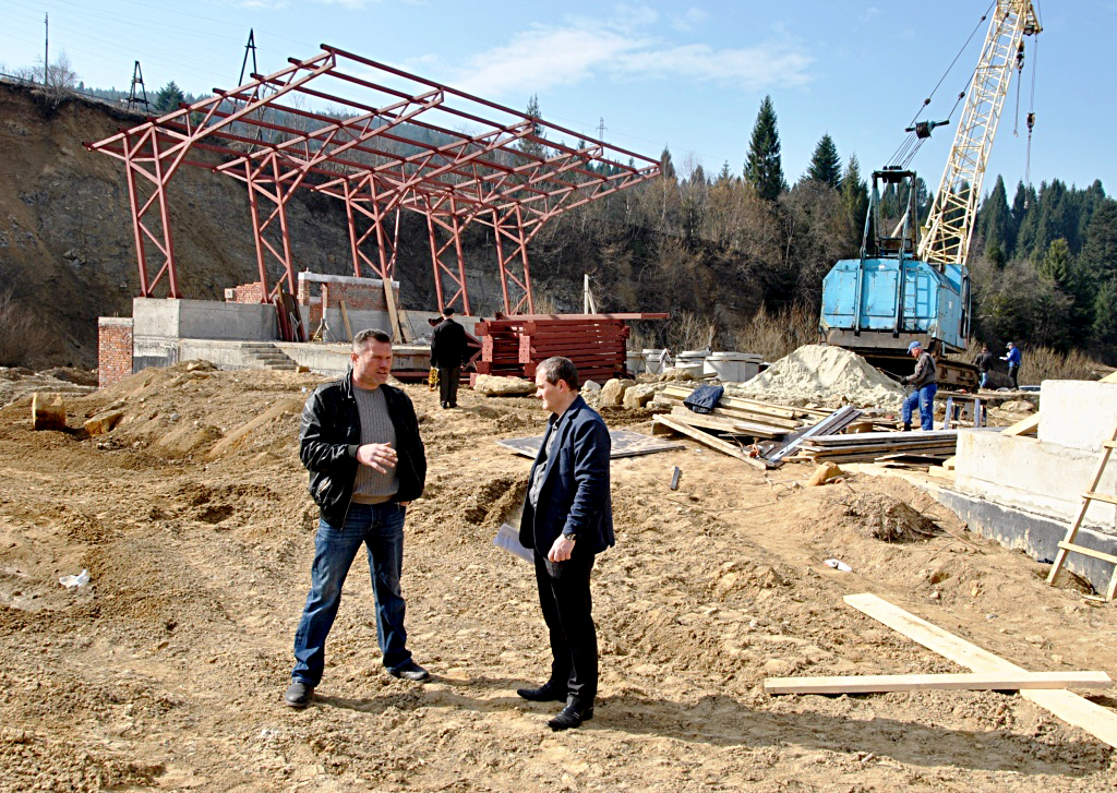На фото: так виглядає у ці весняні дні будівельний майданчик амфітеатру у Східниці; директор готельного комплексу «Санта Марія» Микола Шепітчак із підприємцем Андрієм Жидиком.