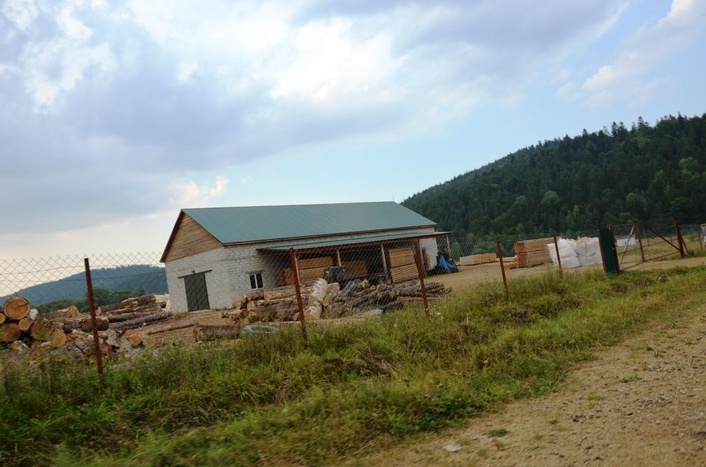 І ось, нарешті, поворот до села Грозьово. Нашу увагу привернув збудований декілька років тому деревообробний цех. Зрештою, такі цехи нам неодноразово траплялися раніше на шляху – ліс у Карпатах вирубується неймовірними темпами.