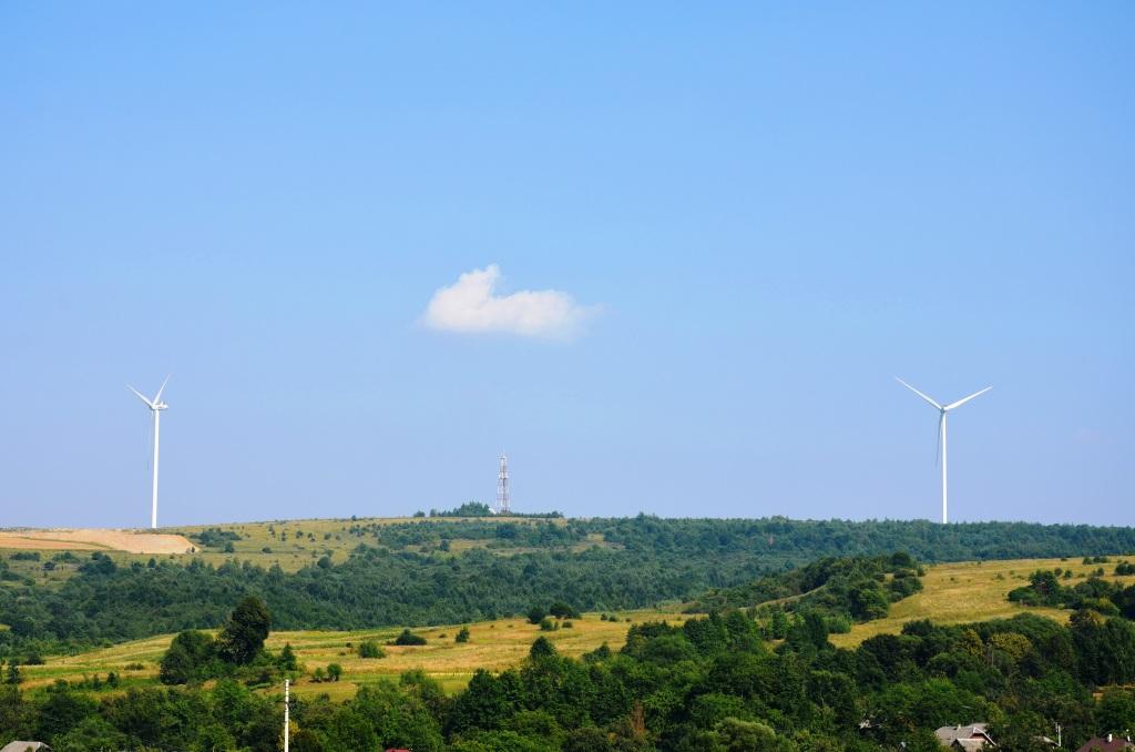Перше, що вразило мандрівника – це два велетенські вітряки на пагорбі, неподалік м. Старий Самбір. Так, це – сучасна вітрова електростанція, яких є доволі в європейських державах. Вона була введена в експлуатацію у лютому місяці цього року в якості першої черги вітрової електростанції «Старий Самбір-1». І ця ВЕС – перша в українських Карпатах! Відтак ми можемо побачити дві вітротурбіни лідера світового ринку Vestas (тип V-112-3,3, номінальна потужність – 3,3 МВт). Технологічно це – найсучасніше обладнання. Висота щогли вітроелектростанції становить 119 м, довжина лопоті – 56 м. Розрахунковий термін служби – 20 років. Характерно, що ця ВЕС задовольняє майже третину потреб електроенергії Старосамбірського району.