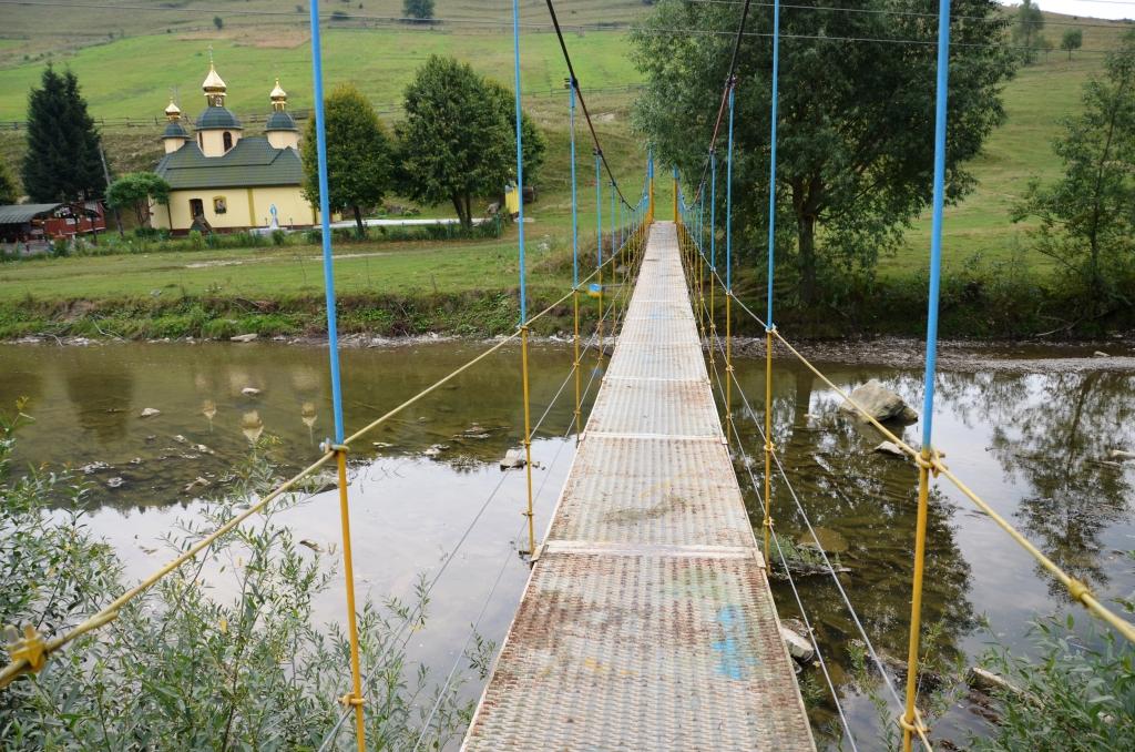Підвісний залізний міст через річку Дністер буквально кликав нас завітати до золотоверхої церкви в с. Головецько. Характерно, що багатомісячна посуха в Галичині призвела до обміління річки, тому її повільний плин аж ніяк не нагадував стрімку річку з бурхливими потоками, як ми зазвичай собі уявляємо гірські річки.