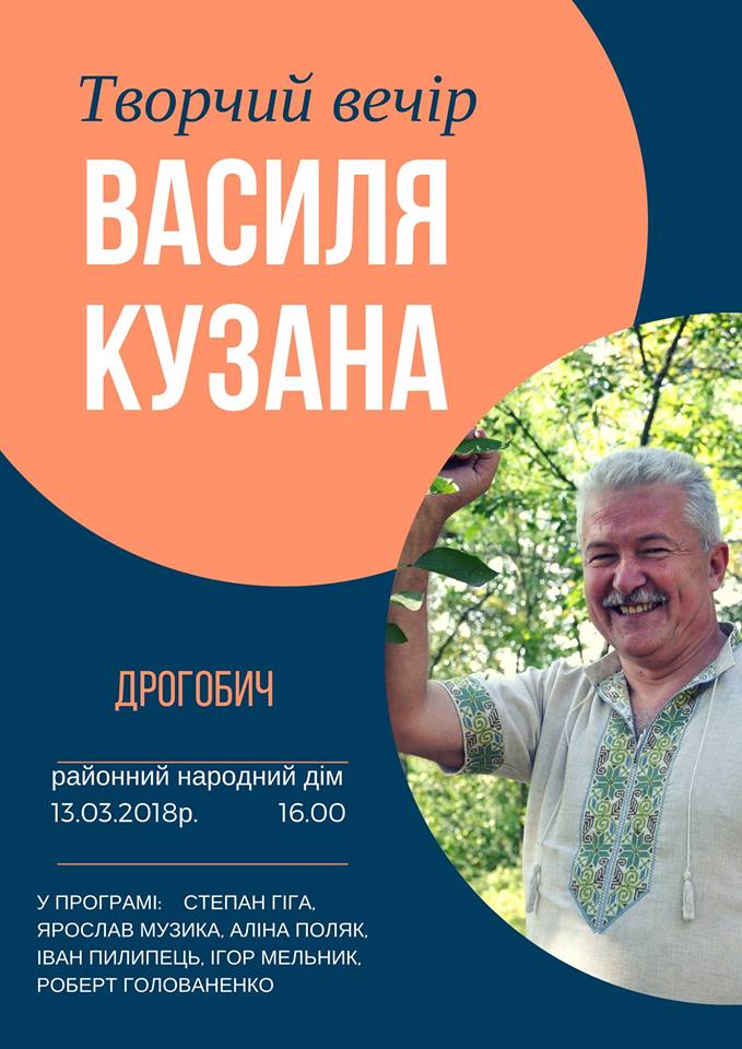 25 лютого Василеві Кузанові виповнилося 55, тож з нагоди свого ювілею він вирішив провести презентації в 55 містах. Перші три зустрічі пройшли на його рідному Закарпатті, а Дрогобич став четвертим містом, яке так тепло та сердечно вітало ювіляра та майстра пера. До речі, зустріч з поетом планується провести і в Трускавці – орієнтовно в кінці березня, після 20-го числа. Між іншим, саме в Трускавці постало більшість творів із нових двох збірок Василя Кузана, зокрема вірші русинською мовою «Дьоньдята».