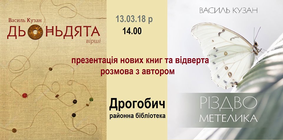 Поет та письменник Василь Кузан ніколи не забуває звідки його коріння. Уродженець Срібної землі (село Довге Іршавського району на Закарпатті) є автором 21 книги, одна з яких написана рідною русинською мовою (закарпатською, діалектом рідного села Василя Кузана). Саме цю книгу під назвою «Дьоньдята», що означає «пацьорки» (намистинки), а також лірично-філософську збірку «Різдво метелика» і презентував 13 березня в Дрогобичі Василь Кузан – поет, письменник, член правління Національної спілки письменників України, директор пансіонату «Нафтуся» у Трускавці.