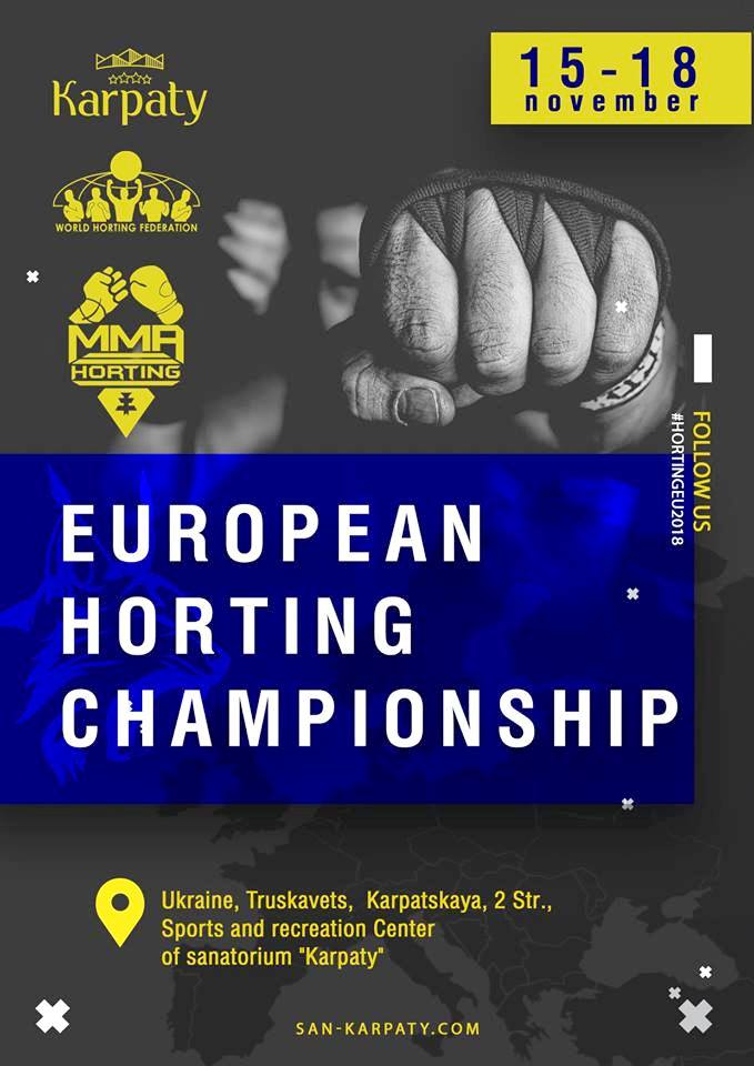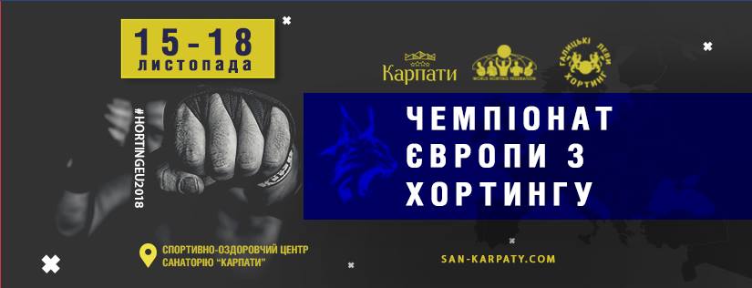 З 15 до 18 листопада у Трускавці проходитиме Чемпіонат Європи з хортингу у різних вікових категоріях (дорослі, юніори, кадети, юнаки, молодші юнаки) в розділах «двобій», «сутичка», «форма», «показовий виступ». Про це інформує управління фізичної культури та спорту Львівської ОДА, передає прес-служба ЛОДА.