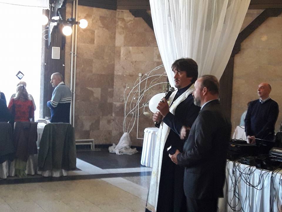 Трапезу поблагословив настоятель парафії Покрови Пресвятої Богородиці о. Володимир Бондарчук, а зі словами привітань виступили секретар Трускавецької міської ради Наталія Пономаренко, голова Трускавецької міської організації партії «Батьківщина» Руслан Крамар, генеральний директор готельно-курортного комплексу «Карпати», голова МГО «Рада Старійшин», двічі міський голова Трускавця (2002-2010 рр.) Лев Грицак.