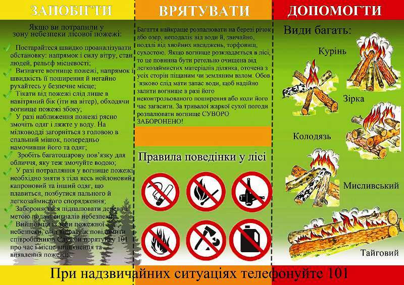 – не розводьте багать у лісі, окрім призначених для вогнищ місць;