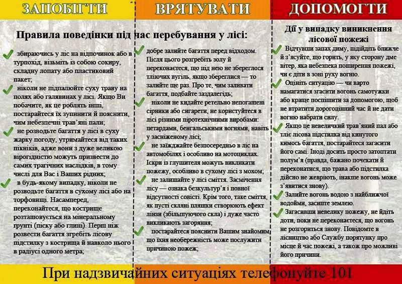 У зв’язку з цим Трускавецький МВ ГУ ДСНС України у Львівській області звертає увагу громадян на необхідність суворого дотримання правил перебування в лісових масивах.