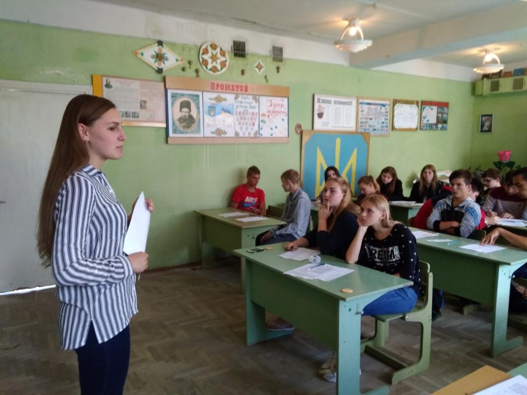 Також Мар’яна Шуляк ознайомила учнів ще з однією темою, а саме: «Геть насильство над дітьми» шляхом надання інформації про те, як можна захистити себе, свою гідність і свої права, враховуючи єдність прав і обов’язків.