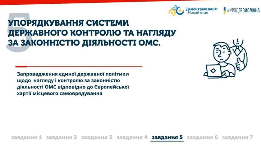 5. Нагляд за законністю: держава має здійснювати контроль за прийняттям рішень органи місцевого самоврядування принципами, які ефективно застосовуються в європейських країнах.