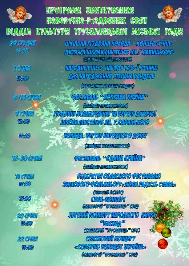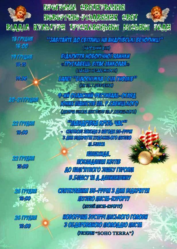 Програма святкування Новорічно-Різдвяних свят у Трускавці (афіша)