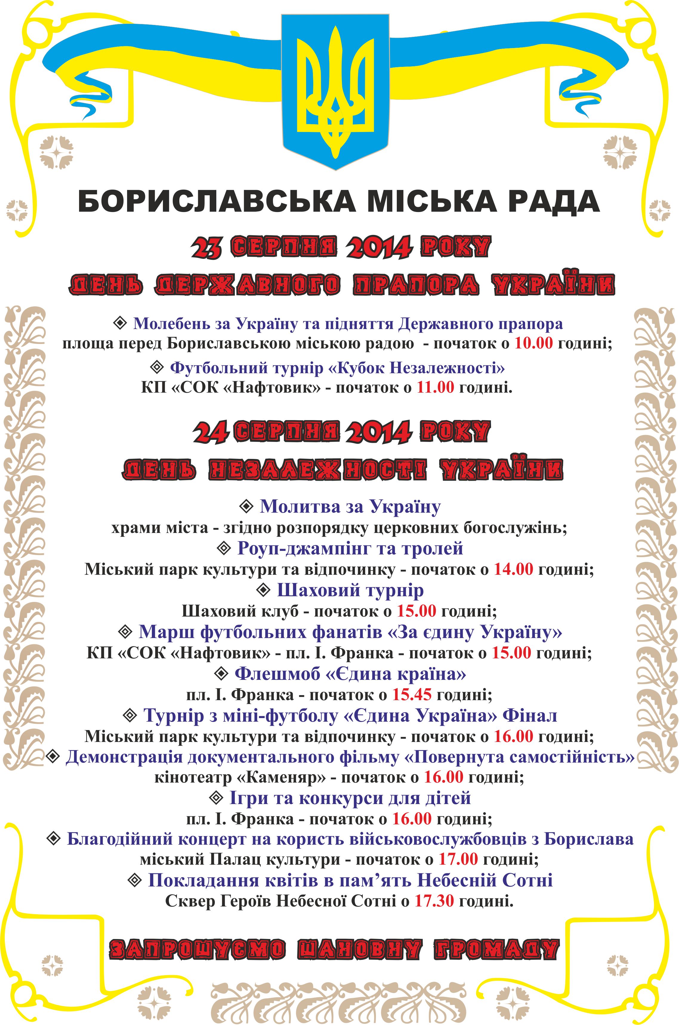 17.00. Урочиста частина та благодійний концерт для допомоги військовослужбовцям з Борислава. Міський Палац культури