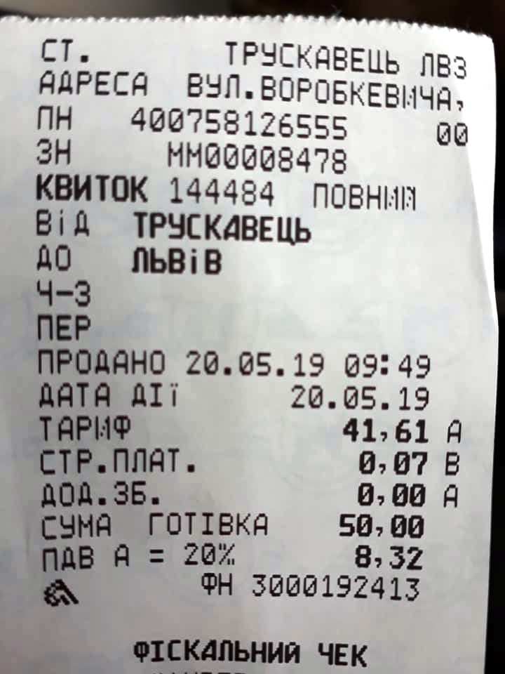 З 18 травня запроваджено нові тарифи в приміському залізничному транспорті. Так, якщо ще недавно проїзд з Трускавця до Львова коштував 30 грн. 50 коп., то тепер він становить 50 грн. Змінилися розцінки і на коротшу відстань – до Дрогобича, Стрия та інших населених пунктів. Ціна зі Львова до Стрия – 35 грн., до Дрогобича чи Стебника – 45 грн. Підставою підняття тарифу на проїзд став наказ № 291 від 13.05.2019 р.