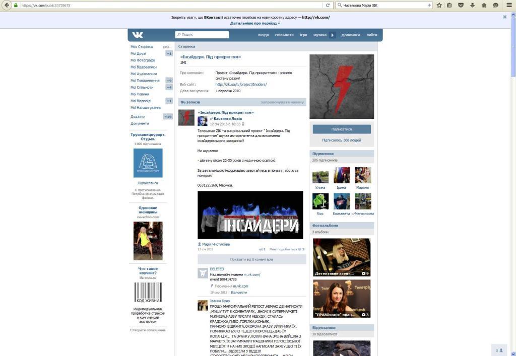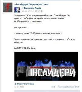 Таке оголошення в 2015 році було розміщено в групі «Кастинги.Львів» в соціальній мережі ВКонтактє. Подала його журналістка Марія Чистякова. Журналістка, котра 31 грудня 2015 р. появилася в ГКК «Карпати» і яка потім «зшила» білими нитками явно замовний сюжет, який вийшов в «Огляді дня» на ЗІКу.