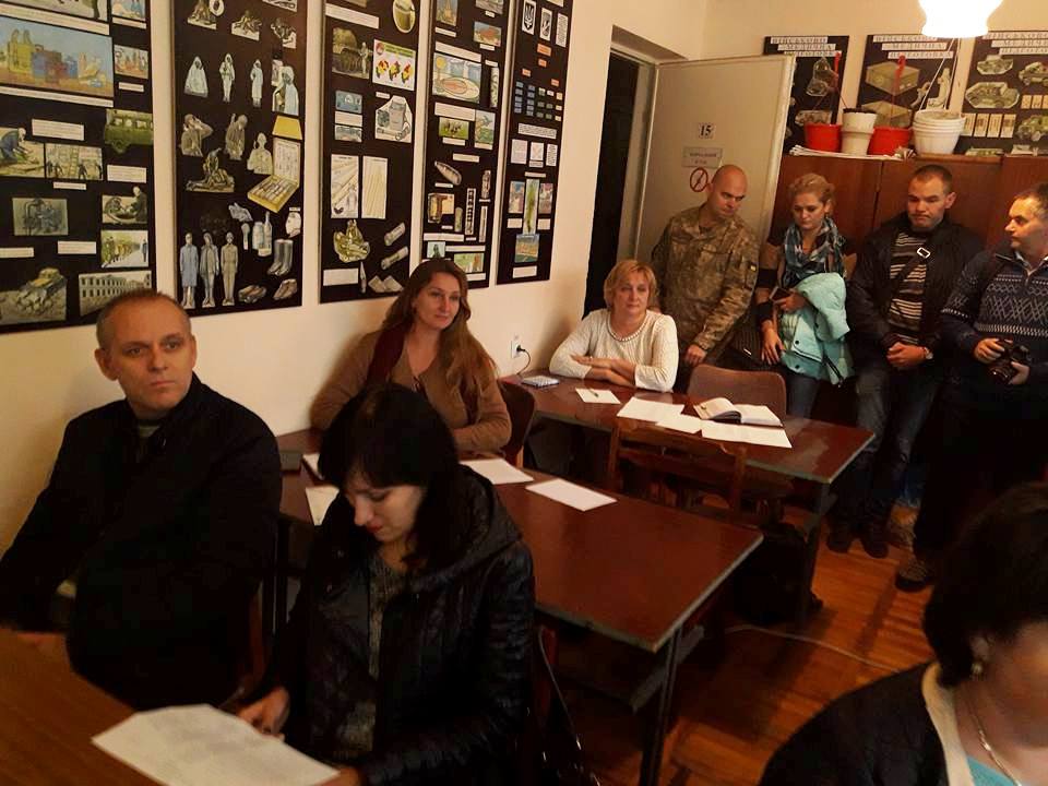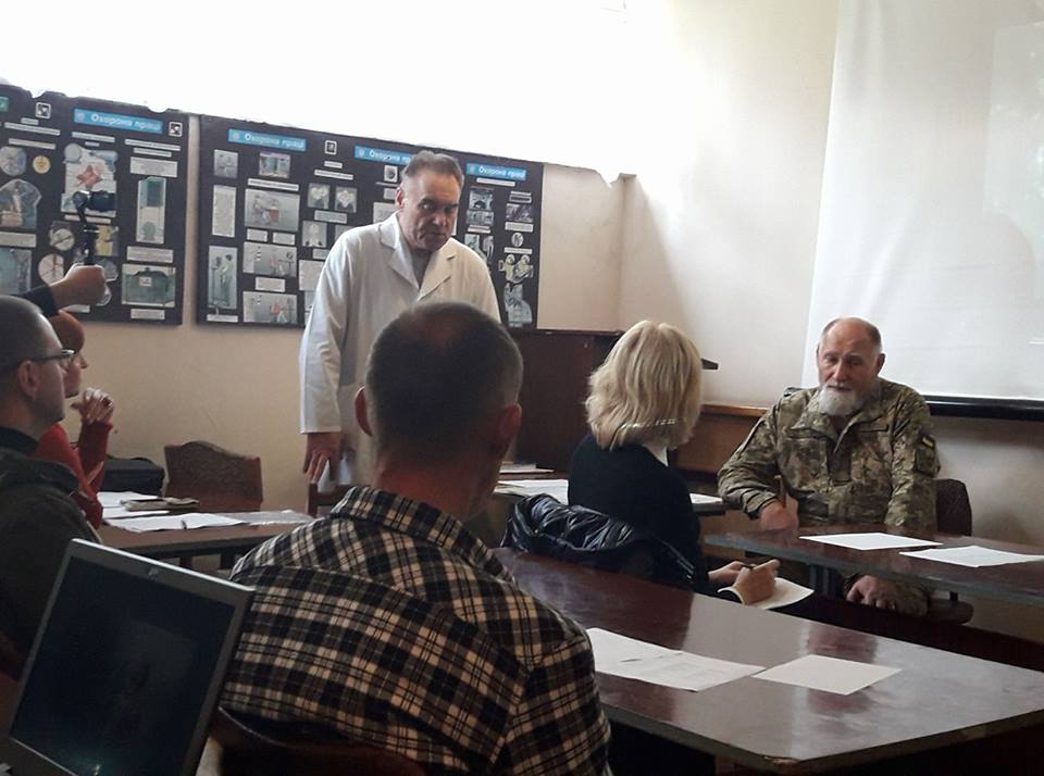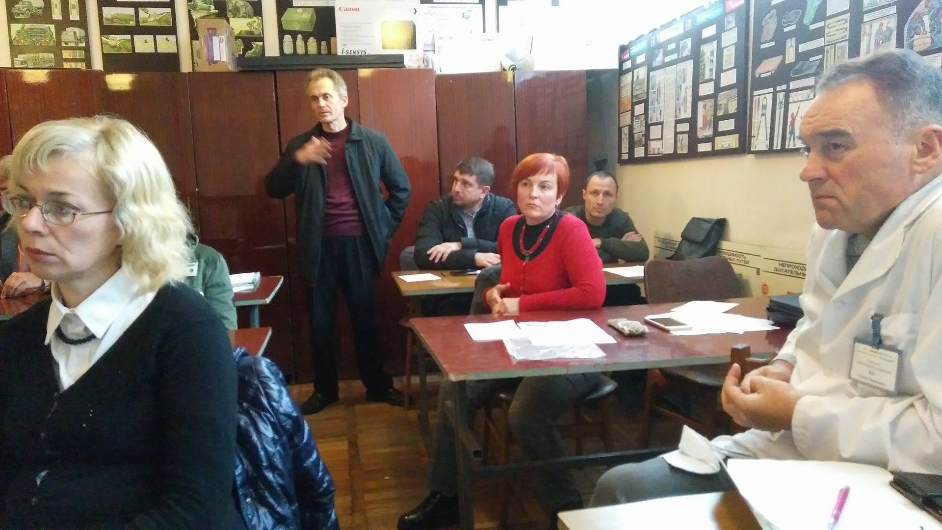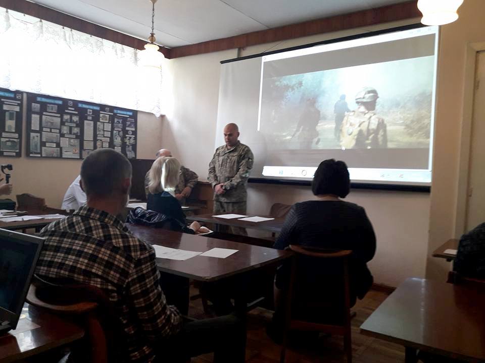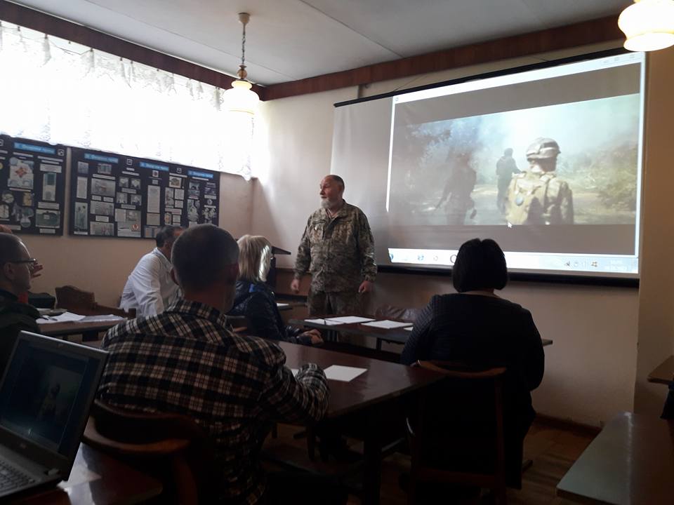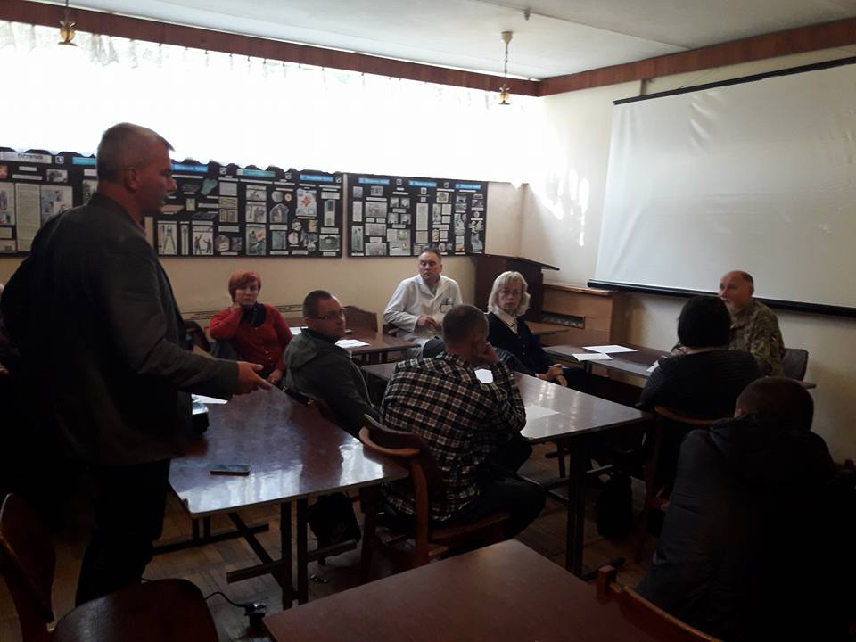 Після вступного слова Олександра Вівчара та перегляду короткого фільму на тему посттравматичного стресового розладу виступили представники військового санаторію – заступник начальника ЦМРтаСЛ «Трускавецький» Роман Перченко та начальник відділення медичної реабілітації Євген Кіт. Останній зокрема розповів про інформаційну кампанію, культурно-масову роботу, психологічну допомогу та проблеми, з якими стикаються у своїй роботі психологи санаторію. Виступ Євгена Кота був досить предметним і викликав істотне зацікавлення учасників круглого столу, особливо щодо проблем депресії, нав`язливих станів, алкоголізму, взаємовідносин в сім`ї, на роботі, на службі.