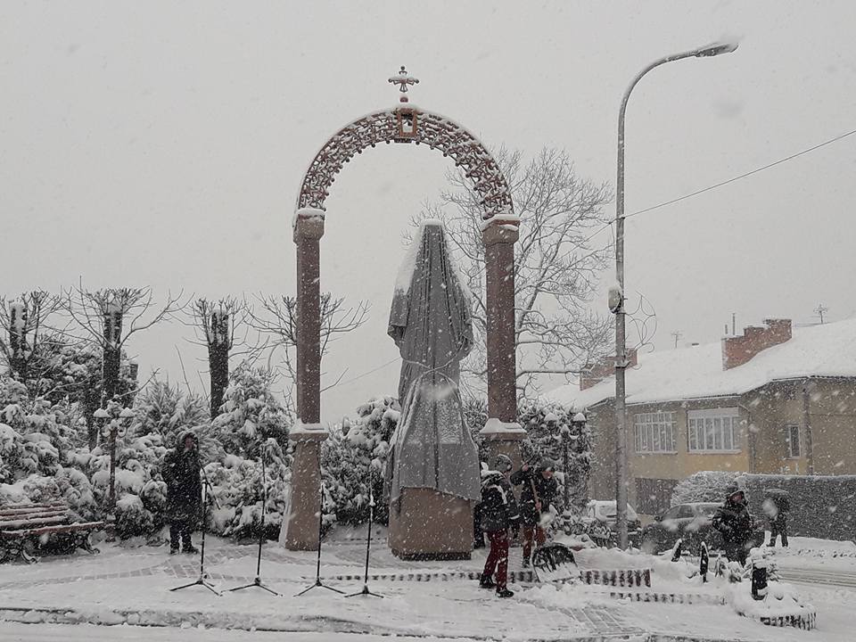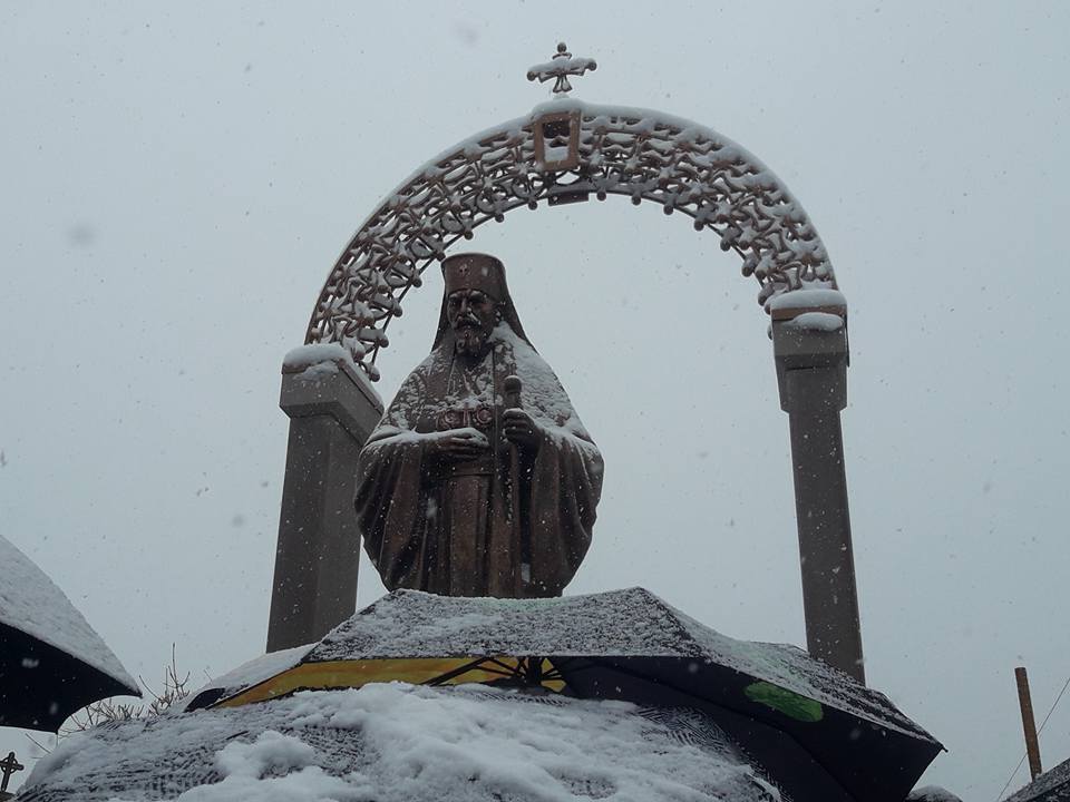 Віхола насипала свою білу шапку на головний убір Верховного Архієпископа Йосифа Сліпого, потім весняне сонце своїми зайчиками пострибало по обличчі, злагіднивши посмішку церковного діяча. Жовте листя падало до ніг постаменту, кружляло в танці навколо металевої конструкції арки, чіплялося за гілки живоплоту. І тепер знову сніг, морозець, а нині – відлига. Рік часу пройшов з моменту, коли пам’ятник Патріархові Йосифові Сліпому прикрасив Трускавець.