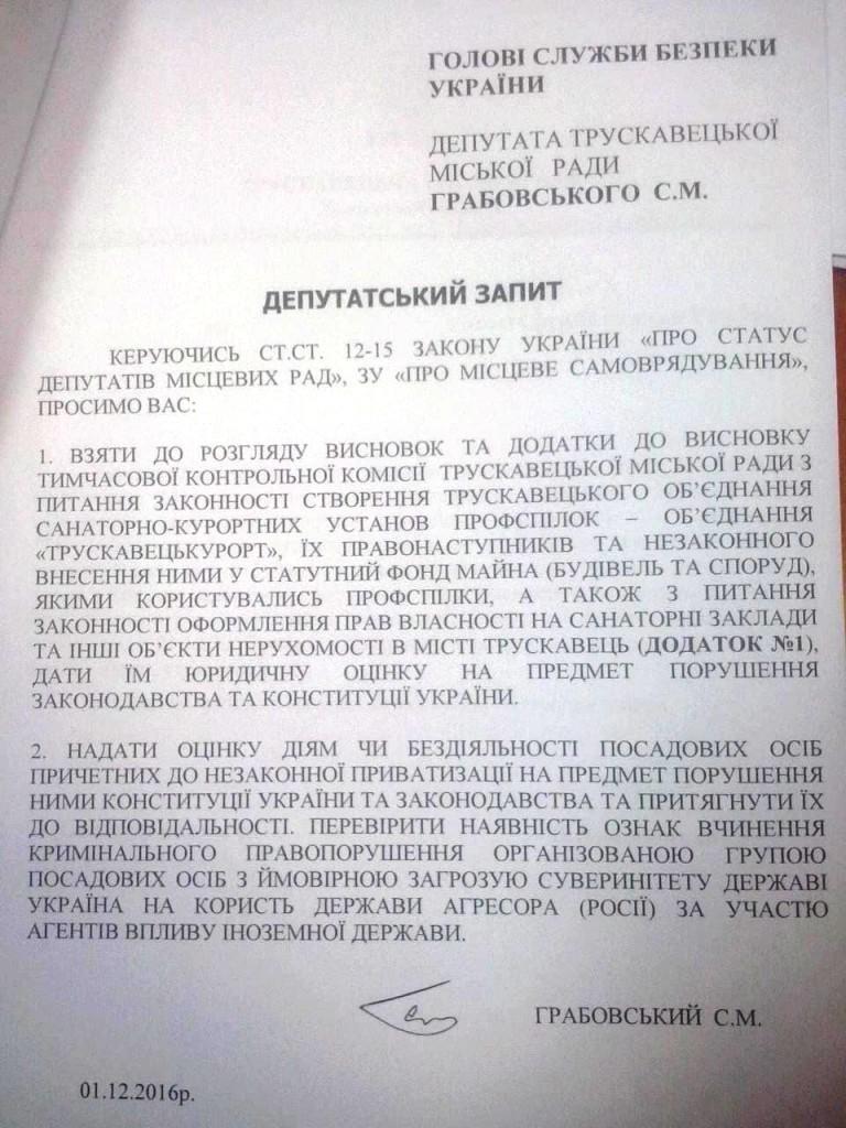 Трускавецькій міській раді звернутись з депутатським запитом: