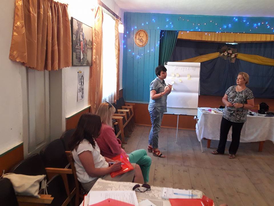 Кожен їхав на цей семінар з якоюсь певною метою і на початку зустрічі розповів про цю мету. А далі під час практичних занять, які проходили у приміщенні Народного дому села Жданівка (сільський клуб, чистий, гарний та доглянутий), в рамках групової роботи учасники семінару-тренінгу дискутували про теми інформування та пропаганди, шукали шляхи дотику та відмінності між цими поняттями, вчилися чіткості подання месиджів.
