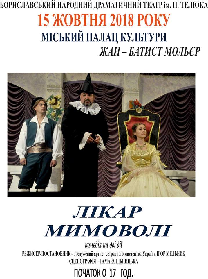 «Лікар мимоволі» Мольєра – це далеко не перша вистава у постановці Бориславського народного драматичного театру імені Петра Телюка, котру публіка сприймає із захопленням, «на ура», з вдячністю та гордістю. Бо як не гордитися, коли в Бориславі є театр такого класу?