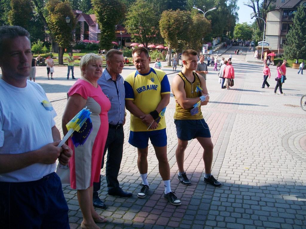 А о 16.00 стартував пробіг. Бориславська команда прибула у складі 20 чоловік плюс супровід. Мер міста прибув на пробіг зі своїм сином-студентом Олегом. У спортивній формі в прямому та переносному значенні були і керуючий справами Бориславської міської ради Олександр Майсак та депутати Роман Кікіс та Ігор Кравецький, а також інші урядники.