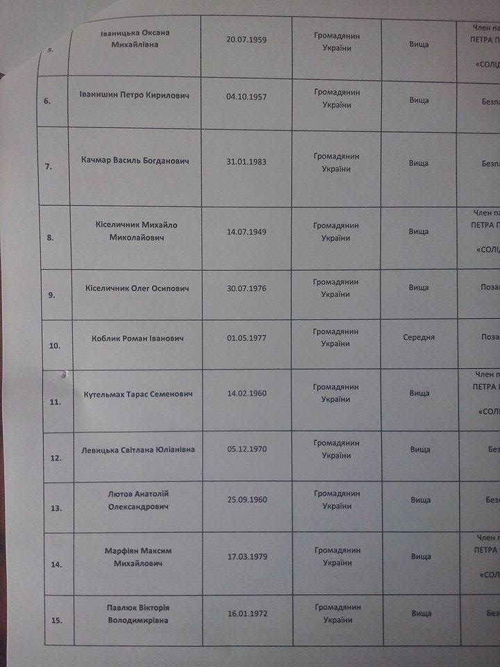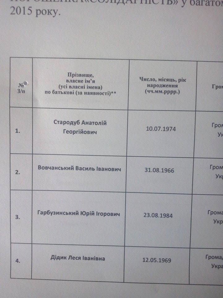 Оприлюднюємо список кандидатів у депутати від «Солідарності» задля того, щоб виборці бачили, хто в ньому присутній та за кого їм пропонують голосувати цього разу. При виявленні схожих «прихованих» кадрів в інших політсилах, будемо висвітлювати і їх.