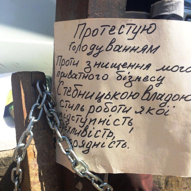 Підприємця зі Стебника Петра Бохняка, який прикувався до власного рекламного щита й оголосив голодування на знак протесту проти дій місцевої влади щодо демонтажу його торгового кіоску та першого з кількох рекламних щитів, сьогодні вранці, 17 серпня, забрала швидка допомога. Як твердять очевидці, що викликали медиків, та самі лікарі, підприємець перебував у критичному стані.
