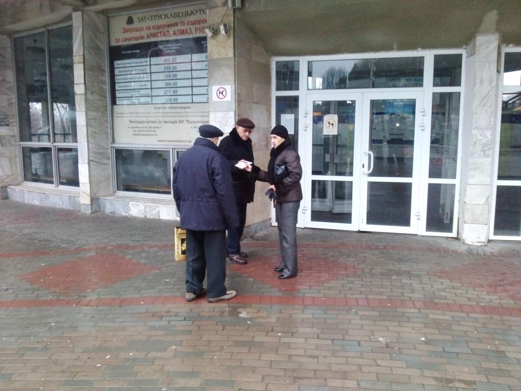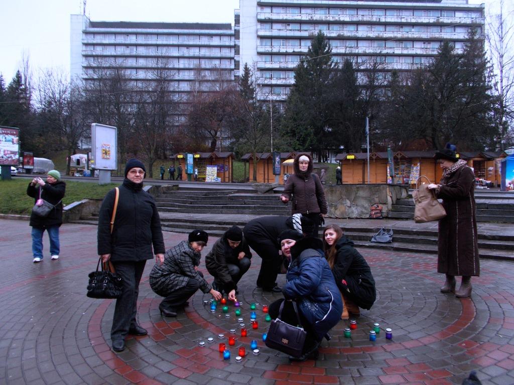 Коли ми розклали свічки у формі хреста і запалили їх, почали підходити відпочивальники і дякувати нам та доставляти свічки в пам’ять своїх родичів, що зазнали Голодомору. Під час акції бібліотекарі проводили біля бювету ще й інформаційно-просвітницьку роботу, роздаючи буклет «Страшне лихо – Голодомор», підготовлений та виданий провідним бібліографом Трускавецької централізованої бібліотечної системи Ярославою Волчанською.