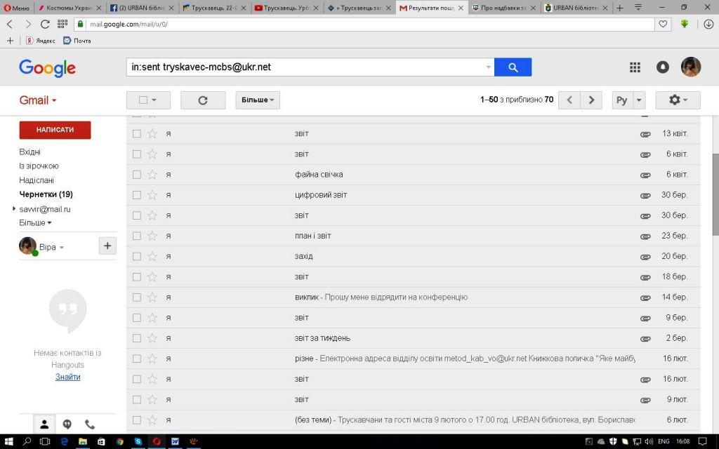 3. Пізніше, як помсту за таку «славу», Т. Татомир пишуть 24.03.2017 року на керівників Службову записку. Що я нібито систематично не повідомляю їх про заходи, що проходять в бібліотеці. Як підтвердження того, що це наклеп, додаю скріншот з моєї електронної пошти.
