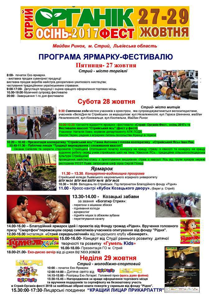 “Стрий Органік-Фест”. Афіша на 27-29 жовтня
