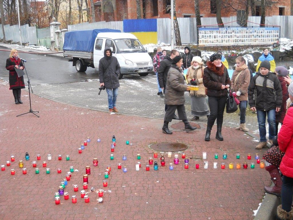 До вшанування Всеукраїнської акції «Запали свічку» у нашому місті долучилася і громадськість. Складаємо щиру подяку власнику супермаркету «Народна гуртівня» п. Ю. Беднарчуку за надання свічок для викладення символічного поминального хреста.