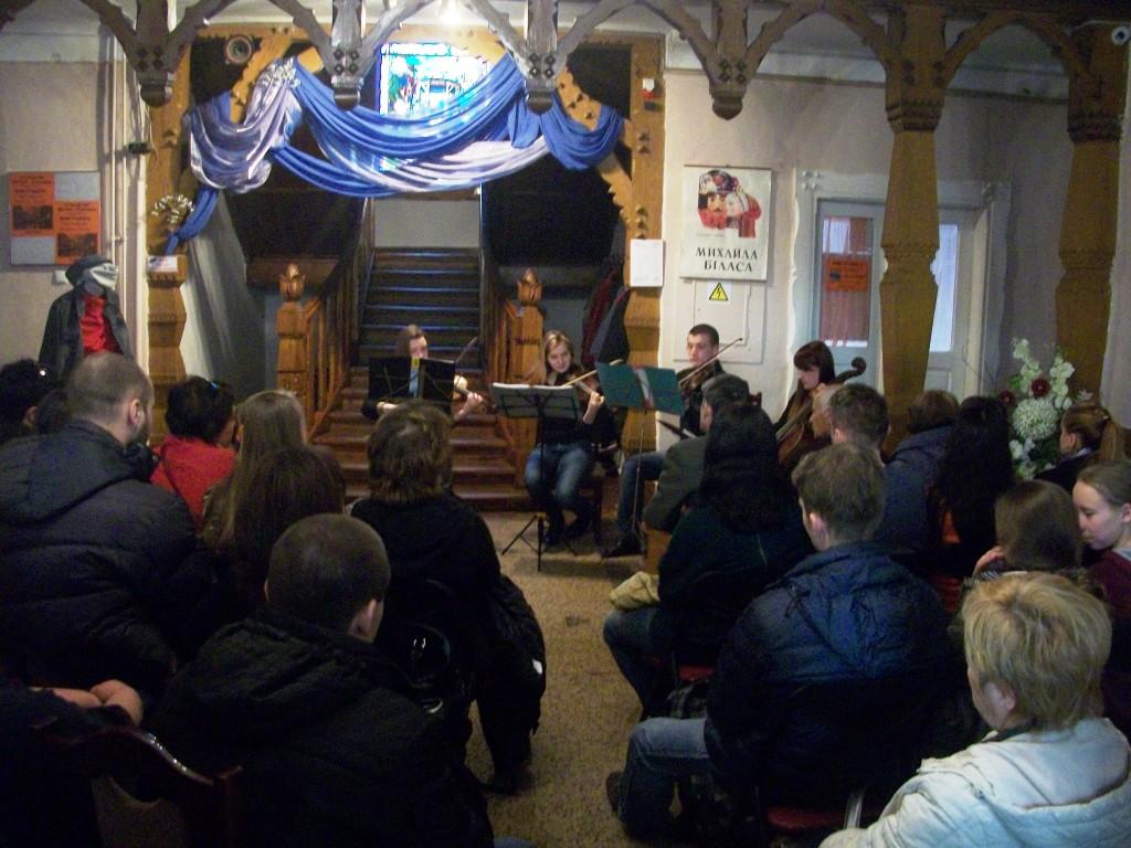 До початку огляду експозиції, яка розмістилася у трьох кімнатах музею, гості насолоджувалися музикою та поезією. Музей Михайла Біласа без сумніву є одним з небагатьох мистецьких центрів міста-курорту, де творчі люди можуть і себе показати, і споріднену душу для спілкування віднайти. Тож і цього разу відкриття виставки в музеї стало нагодою для спілкування творчих людей, які розуміють одне одного з півслова. А виступ струнного квартету “Тет-а-тет” з Дрогобича зірвав бурхливі оплески.