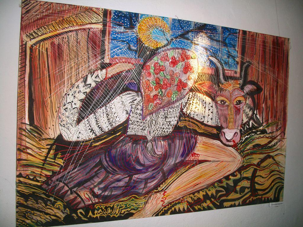 Натомість сама Світлана Забара у велику філософію не вдавалася, доповнювати виступи не побажала, а одразу запросила оглянути експозицію. Тільки попередила – не кожен зрозуміє, бо буде дещо нестандартно. І дійсно, інсталяції юної трускавчанки значно відрізнялися від того, що можна було б очікувати у солідному музеї. Аркуші недопаленої на Майдані книги, картини, в яких поєднується інфантильність дівчинки та материнство, до якого покликаний рід жіночий, об`ємні фігури безликих жінок та чоловіків. Яскраві фарби (здається, червоний є улюбленим кольором Світлани) наче запрошують розділити радість свята, свята юності, свята весни, безтурботності та любові. А завуальованість інсталяцій немов показує нам, що життя далеко не таке просте, яким здається на перший погляд. Бо інколи дощ означає сльози; ріки, гори та дикі звірі – перешкоди на шляху до мети; корова – тепло домашнього вогнища та парне молоко.