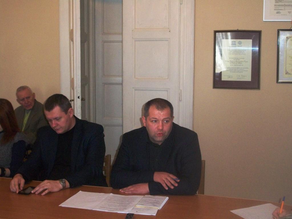 Про судові справи, в яких бере участь міськвиконком, та юридичні нюанси деяких із цих справ розповів журналістам керуючий справами виконкому Дрогобицької міської ради Володимир Коцюба. Він також представив трьох нових посадовців ратуші. Четвертого, Ігоря Чаву, який найближчим часом очолить новостворений туристично-інформаційний центр Дрогобича, представив заступник мера з гуманітарних питань Олег Дукас.