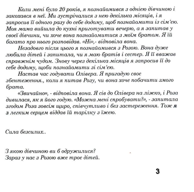 У кожного з нас настають такі моменти в житті, з яких, здавалося б, немає виходу. Стрес може бути настільки глибокий, що без сторонньої допомоги виборсатися майже неможливо. Людина в цю мить відчайдушно намагається знайти хоч якийсь порятунок, і з надією шукає його у наших очах, словах чи діях. Але коли не знаходить підтримки, тоді її життя перетворюється у пекло.