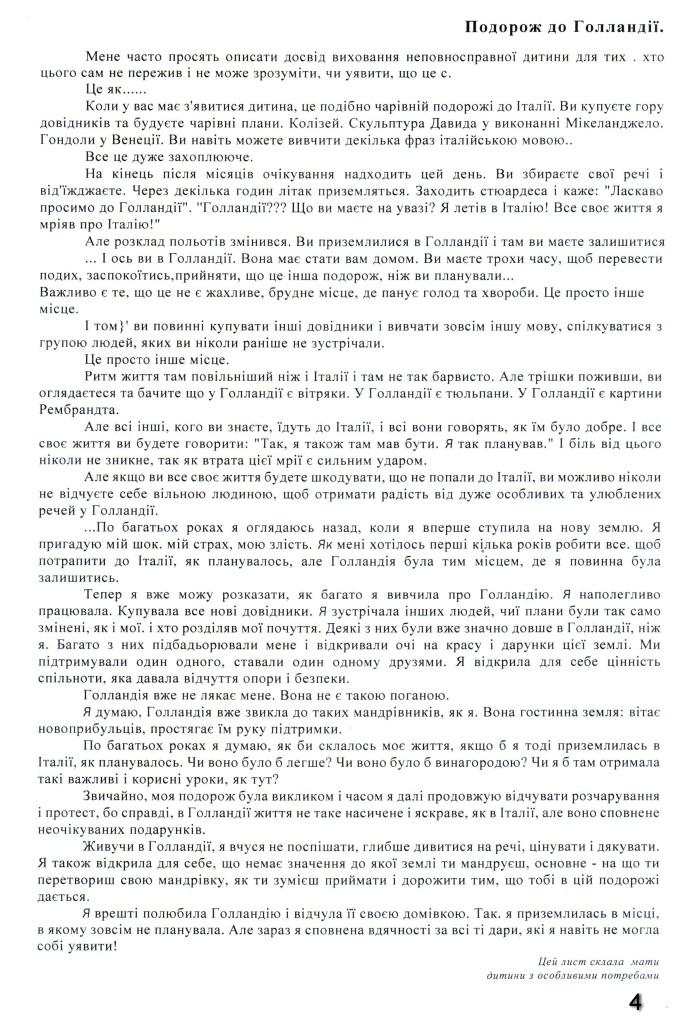 Та навіть якщо родина стійко зносить такі випробування, то держава, і навіть суспільство в Україні залишає сім’ю нести цей тягар самотужки, обмежуючись мізерною пенсією для інваліда. Ми чомусь цураємось надати бодай моральну підтримку або ж не маємо глибокого розуміння їх проблем, сприймаємо їх поверхово. Співчуття наші – формальні, ми не поділяємо біль ближніх, нехтуємо їх потребами, і вперто не віримо у те, що така ж біда може спіткати колись зненацька й нашу родину. Нам невідомі будні таких сімей, де час буквально зупиняється; ми не переймаємося тим, що у них бракує грошей на лікування дитини, харчування, проживання та багато іншого. І світ такої дитини зазвичай обмежений чотирма стінами домівки та змальовується у чорно-білих тонах. Суспільство досі не готове сприймати дитину з особливими потребами як невід’ємну частину самого себе, відмежовуючись від неї. А що потрібно батькам таких дітей від нас? Та дуже мало: просто вислухати, щось порадити, усміхнутися, морально підбадьорити, допомогти у вирішенні проблем, у тому числі бюрократичних перепон, побажати наснаги та оптимізму.