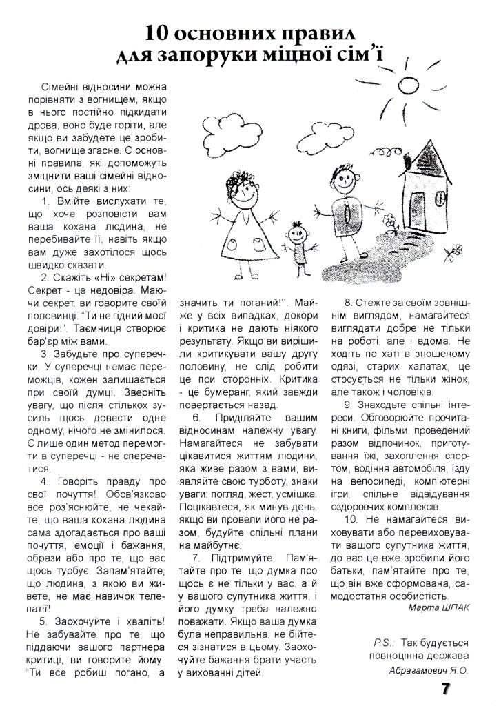 Висловити, не криючись, про наболіле та почути інших, побачити свої упущення у вихованні неповносправних дітей та дізнатися про діючі в Україні інфраструктури, адаптовані для виховання таких дітей, поділитися своїми досягненнями у вихованні дітей-інвалідів, як і, врешті-решт, підтримати інших батьків дав можливість семінар, що проходив з 13 до 15 березня ц.р. у смт. Брюховичі біля Львова. Учасниками семінару «Таємниця щасливих батьків» стали дев’ять подружніх пар з шести областей України, в родинах яких є діти-інваліди. Програма «Батьки для батьків», згідно якої діяв семінар, заснована у 1999 році і проводить семінари та літні табори. Її основним завданням є обмін досвідом батьків дітей з особливими потребами. Команда організаторів семінару складається з чотирьох осіб, а саме: Оксани Винярської – сімейного системного психотерапевта, Мар’яни Сеньків – психолога та двох досвідчених мам, що виховують дітей з особливими потребами – Марії Парфенюк та Людмили Аннич. Засновником та консультантом Програми є лікар-психіатр, психотерапевт Олег Романчук. Команда працює більше 10 років з сім’ями з різних міст України. У заліку організаторів Програми «Батьки для батьків» – більше 40 семінарів для батьків різного напрямку: для мам, що самі виховують неповносправну дитину, для татів, для подружніх пар, для лідерів громадських організацій та близько 20 літніх таборів для всієї сім’ї. Фінансується Програма завдяки спонсорським пожертвам членів Ротарі Клубів Швейцарії. Вже 10 років чуйні добродії з Швейцарії підтримують такі українські сім’ї. Такою участю вони дбають про те, щоб наші діти з особливими потребами росли в міцних згуртованих сім’ях.