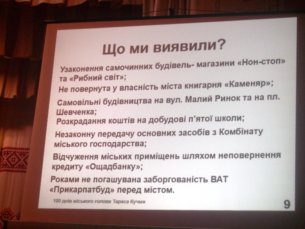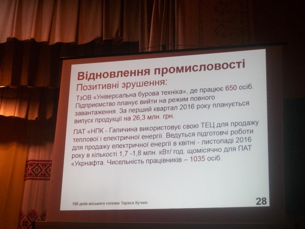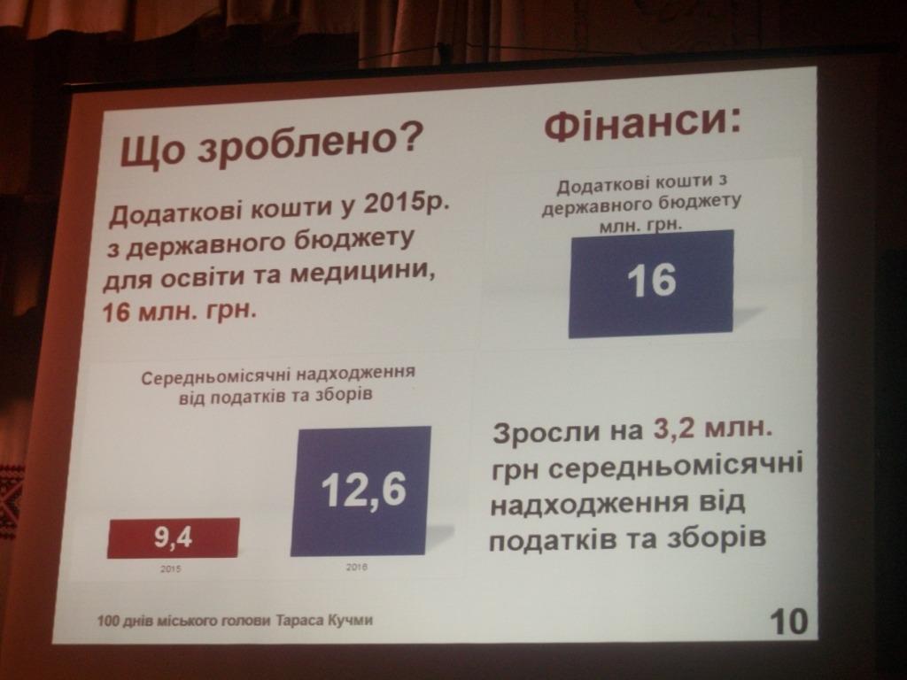 На слайдах доповідь Тараса Кучми супроводжують цифри та картинки – конкретні результати його роботи за цих сто днів. Нижче подаємо деякі з них.