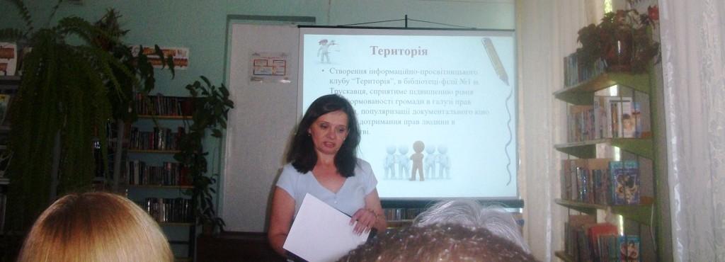 З нагоди Дня Конституції у Трускавецькій бібліотеці-філії №1 пройшов захід, який має на меті підвищити правову свідомість наших громадян. Мова йде про відкриття кіноклубу про права людини Docudays UA «Територія», яке відбулося у середу, 29 червня.