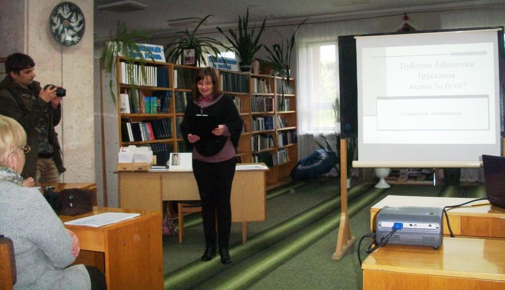 Зустріч на тему «Якими бути публічним бібліотекам?» виявилася цікавою та динамічною. Участь в обговоренні взяли депутати Ігор Пілько та Богдан Процишин, громадські діячі Микола Іваник та Святослав Грабовський, викладач англійської мови Оксана Мотика, поет В`ячеслав Умнов, завідувач відділу культури ТМР Тетяна Татомир, працівники трускавецьких бібліотек. Блискучим був виступ директорки стрийської бібліотеки, котра поділилася історією успіху.