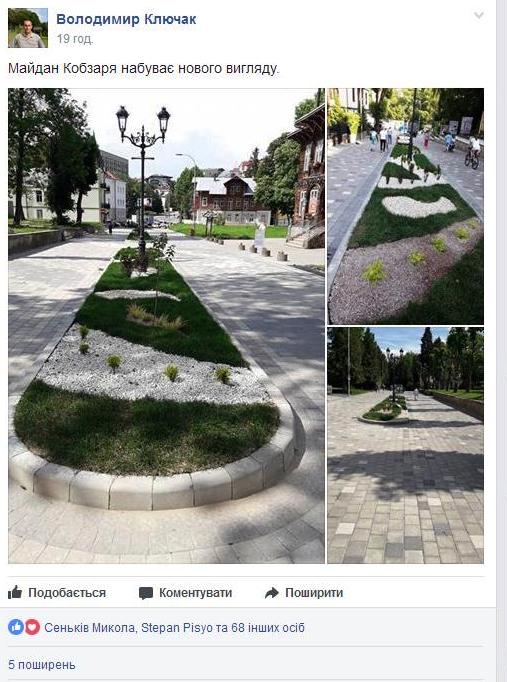 І вже зовсім у вузькому колі цікавилися такими промоційними заходами як візит начальника управління розвитку курорту до Вірменії, візит до Трускавця делегації туроператорів з Азербайджану та Туркменістану, встановлення комплексу «Я люблю Трускавець». Зате всі наочно бачать іншу промоцію в дії – ремонт майдану Кобзаря, який здійснюється кардинально інакше, ніж свого часу робився ремонт вулиці Шевченка. Тоді звичайну вулицю, знищену під час будівництва «Міротелю» і яку обіцявся відновити гарантійним листом ПрАТ «Трускавецькурорт», ремонтували поспіхом, абияк, без заміни водопровідних, каналізаційних та інших мереж, косо-криво, аби встигнути до виборів. Тут же роблять на совість. І за це респект міському голої та всій його команді.