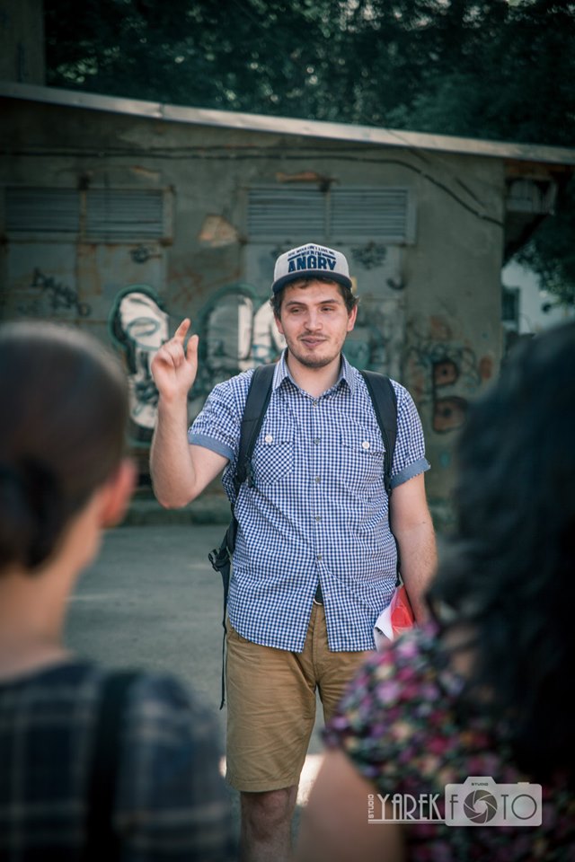 Так от, презентація, яка відбулася у дуже академічній обстановці, насправді була лише прелюдією до найцікавішого. Після роздачі автографів до керма заходу приступив головний ініціатор створення збірки, історик та журналіст Олег Стецюк. Відтак стартувала літературна екскурсія по творах, які увійшли до «Тріади часу». Хоча твори і художні, але велетенський пласт історичної інформації про Дрогобич можна отримати саме на таких екскурсіях, які, на жаль, відбуваються вкрай не часто. Маршрут ніби і невеликий: вулиця Панська, костел святого Варфоломія та площа Ринок, проте тривала екскурсія понад дві години. Біля кожної кам’яниці ми слухали правдиві і вигадані історії. Цікавою була зупинка біля ями на перетині вулиць Мазепи і Бандери. За задумом авторів, це ворота у паралельний світ, звідкіля у нашу реальність час від часу потрапляють фантастичні істоти.
