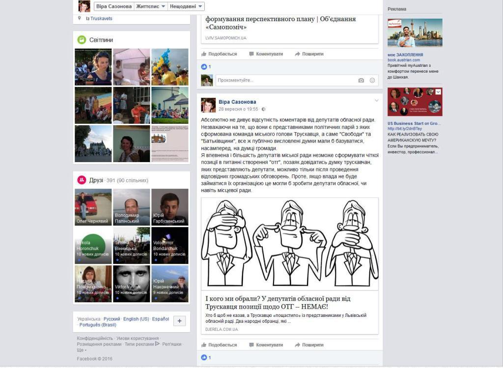 P.S. Для тих, хто захоче заперечити: уважно погляньте на цю світлину. Це скрін-шот з посту депутатки від «Самопомочі» Віри Сазонової, в якому вона поширює статтю «Джерел Трускавця». Зверніть увагу на висловлювання щодо «політичних партій, з яких сформована команда міського голови Трускавця, а саме «Свободи» та «Батьківщини». Sapienti sat.