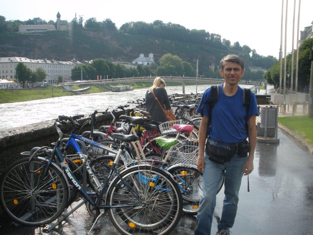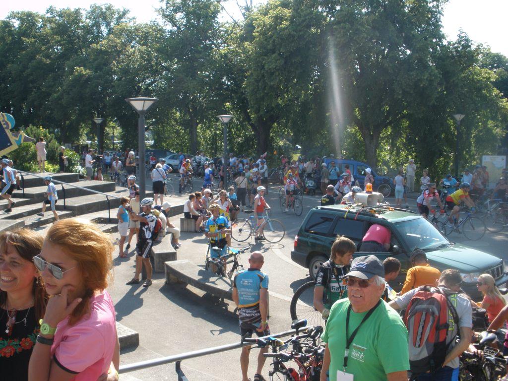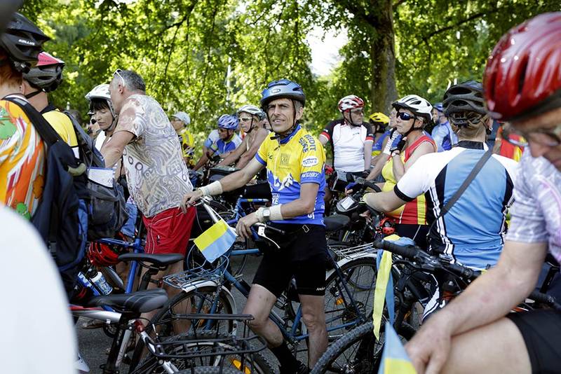 На фото: трускавецькі велосипедисти Микола Іваник та Олег Осійчук; Європейський зліт велосипедистів в м. Івердон (Швейцарія) в липні 2013 р.