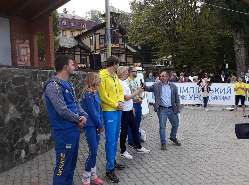 Захід проходив на центральній площі Незалежності м. Трускавця. В цей день на “Олімпійський урок” завітали аж чотири олімпійці: Дмитро Дем`янюк (легка атлетика, стрибки у висоту), Лариса Заспа (гандбол), Антон Дукач (санний спорт) та член комісії атлетів НОК, гірськолижник, ініціатор і керівник проекту Дмитро Мицак. До речі, Дмитро Дем`янюк прибув до Трускавця спільно зі своєю дружиною, також відомою спортсменкою.