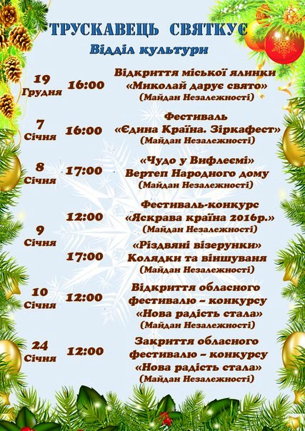 Програма заходів відділу культури Трускавецької міської ради на Різдвяно-Новорічні свята