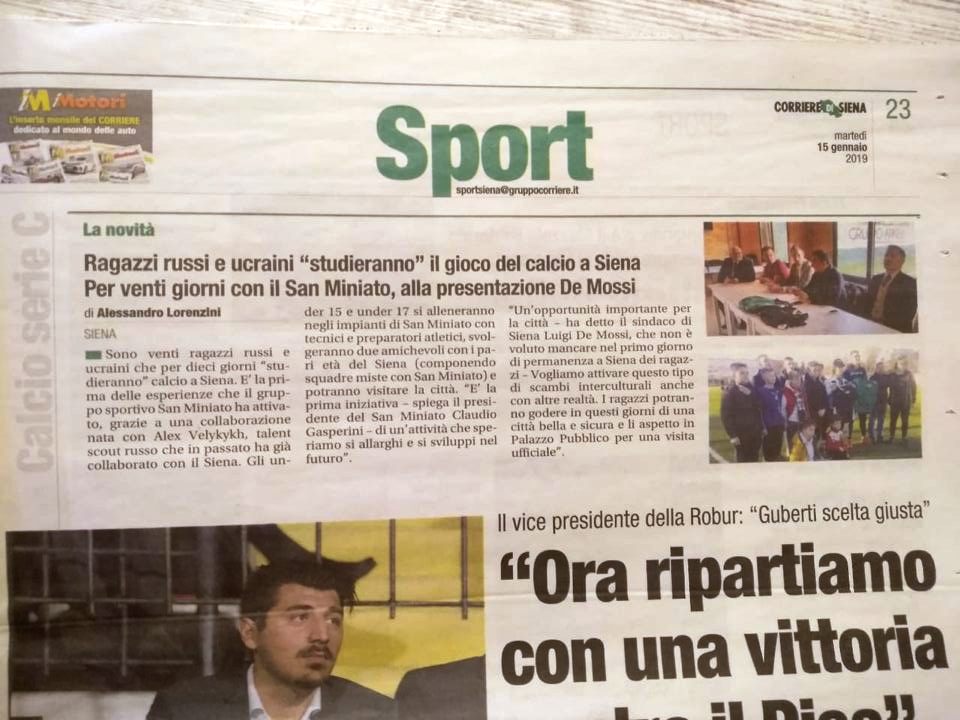 італійські газети про можливу співпрацю Трускавця та Сієни, України та Італії в спортивній галузі.