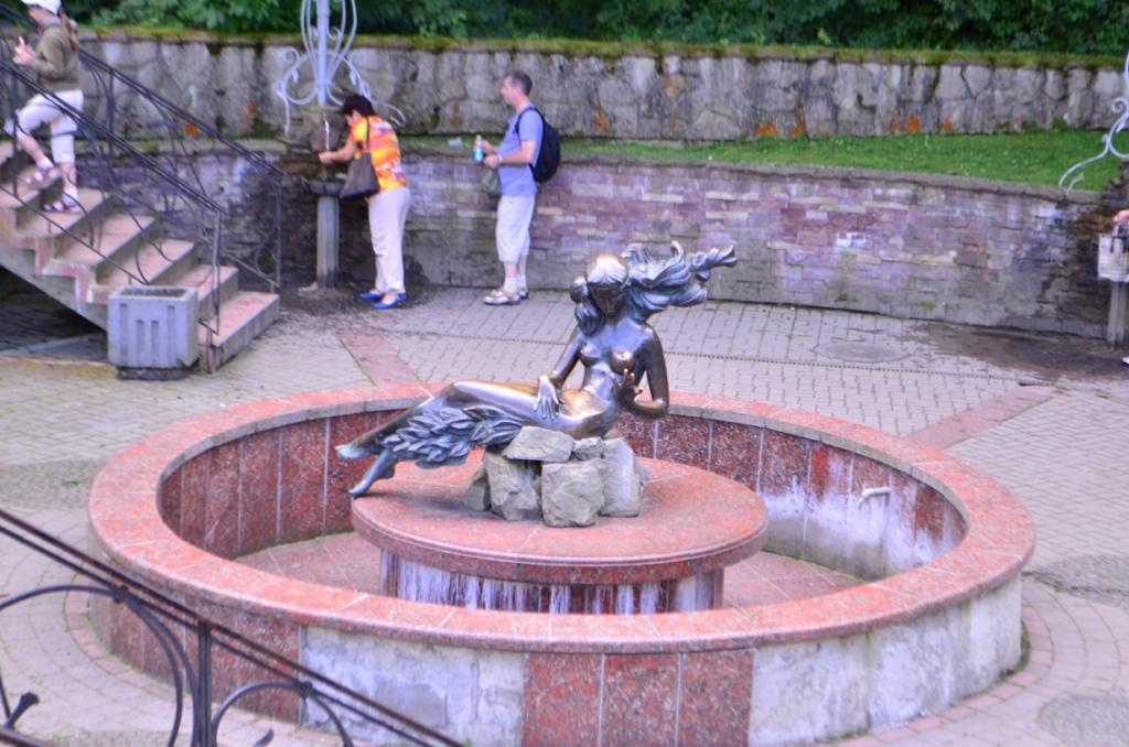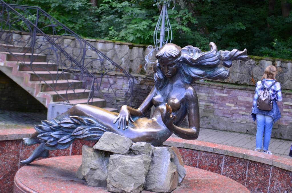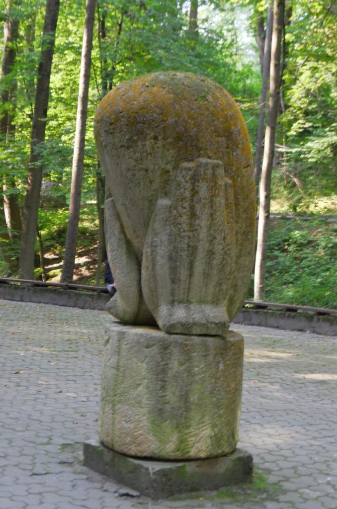 Ще відпочиваючі часто запитують, стоячи біля скульптури «Мислитель»: що було раніше, яйце чи курка? Насправді, скульптура Григорія Кудлаєнка (м. Вінниця) – це не яйце і навіть не долоні, що тримають чиюсь голову. Це наша з вами нирка, людський орган, який ми зобов’язані шанувати, інакше вона нагадуватиме про себе і тоді без «Нафтусі» ніяк.