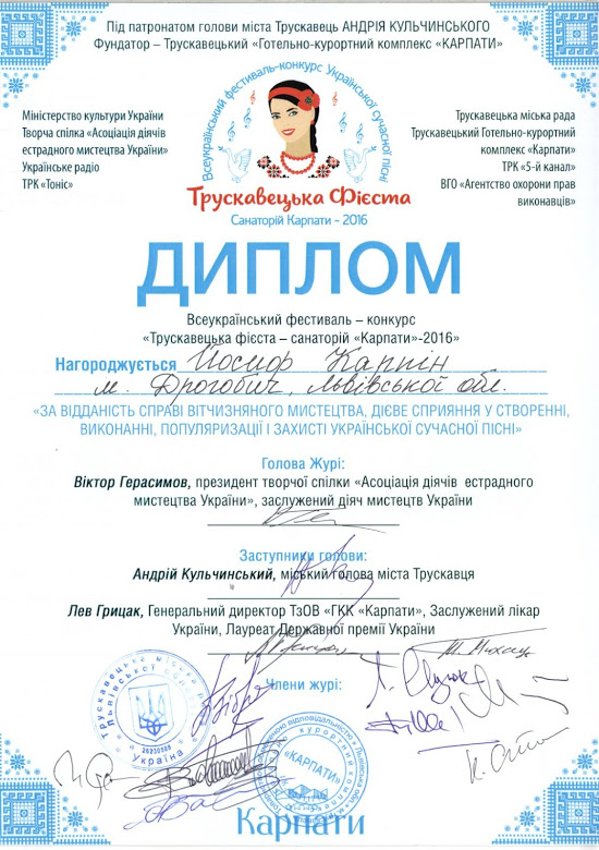 21-22 травня Трускавець приймав учасників та гостей Всеукраїнського фестивалю-конкурсу самодіяльної творчості «Трускавецька фієста – санаторій «Карпати»-2016», що проходив під патронатом Трускавецького міського голови Андрія Кульчинського.