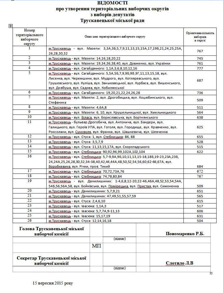 Вчора, 15 вересня, відбулося засідання Трускавецької міської виборчої комісії, яка нарешті зібралась практично в повному складі (17 членів комісії).