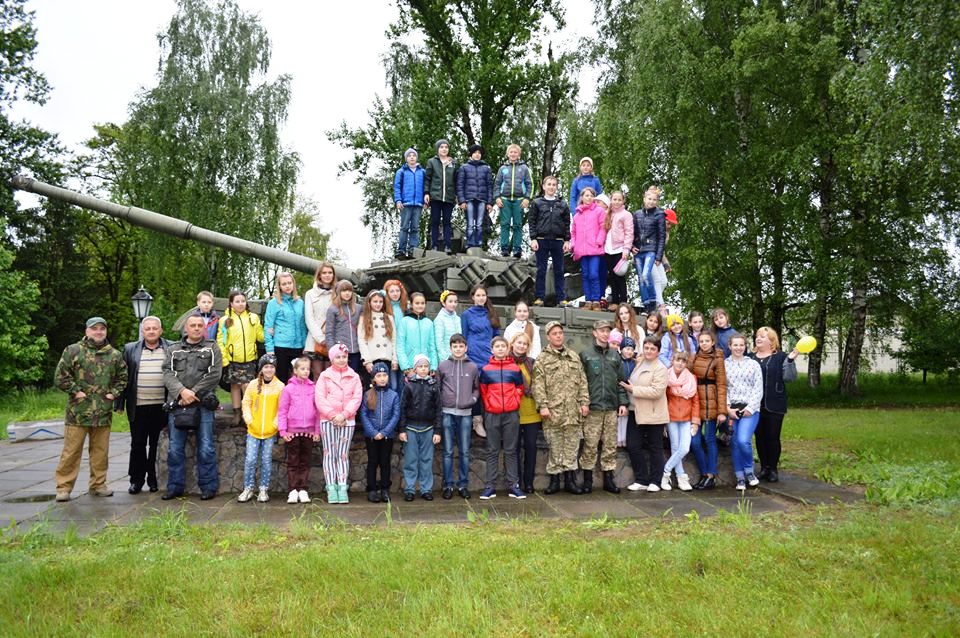 В свою чергу для наших гостей ми провели екскурсію частиною. Хоча погода мало сприяла, та все ж діти дуже раділи танку Т-64. Активно фотографувались та позували на постаменті, де стоїть танк. Екскурсія музеєм бригади сподобалась як дорослим, так і дітям. В книзі залишено пам’ятний запис від СЗШ №3 м. Трускавця.