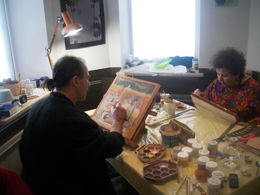 Кожен день митці починають з молитви в каплиці оздоровниці. Після благословення, уділеного отцем Володимиром Бондарчуком, духовним опікуном і одним з організаторів пленеру, іконописці займають місця в затишному напівтемному залі і під відповідну музику беруться до справи.