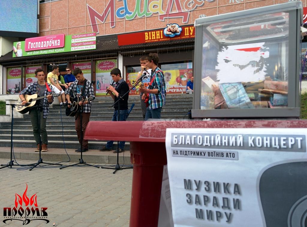 У ході проведення заходу відбувався збір коштів на допомогу бійцям АТО. Загалом було зібрано 820 грн. Для вас співали дрогобицькі виконавці, які популяризують саме українську музику, а саме – гурт “New life”, Ірина Навроцька, Іванна Петуляк та Ярослав Проців. Також висловлюємо подяку за співпрацю пану Володимиру (надана апаратура) та магазину KramMerry (наданий доступ до електромережі) і, звичайно, нашим небайдужим дрогобичанам!
